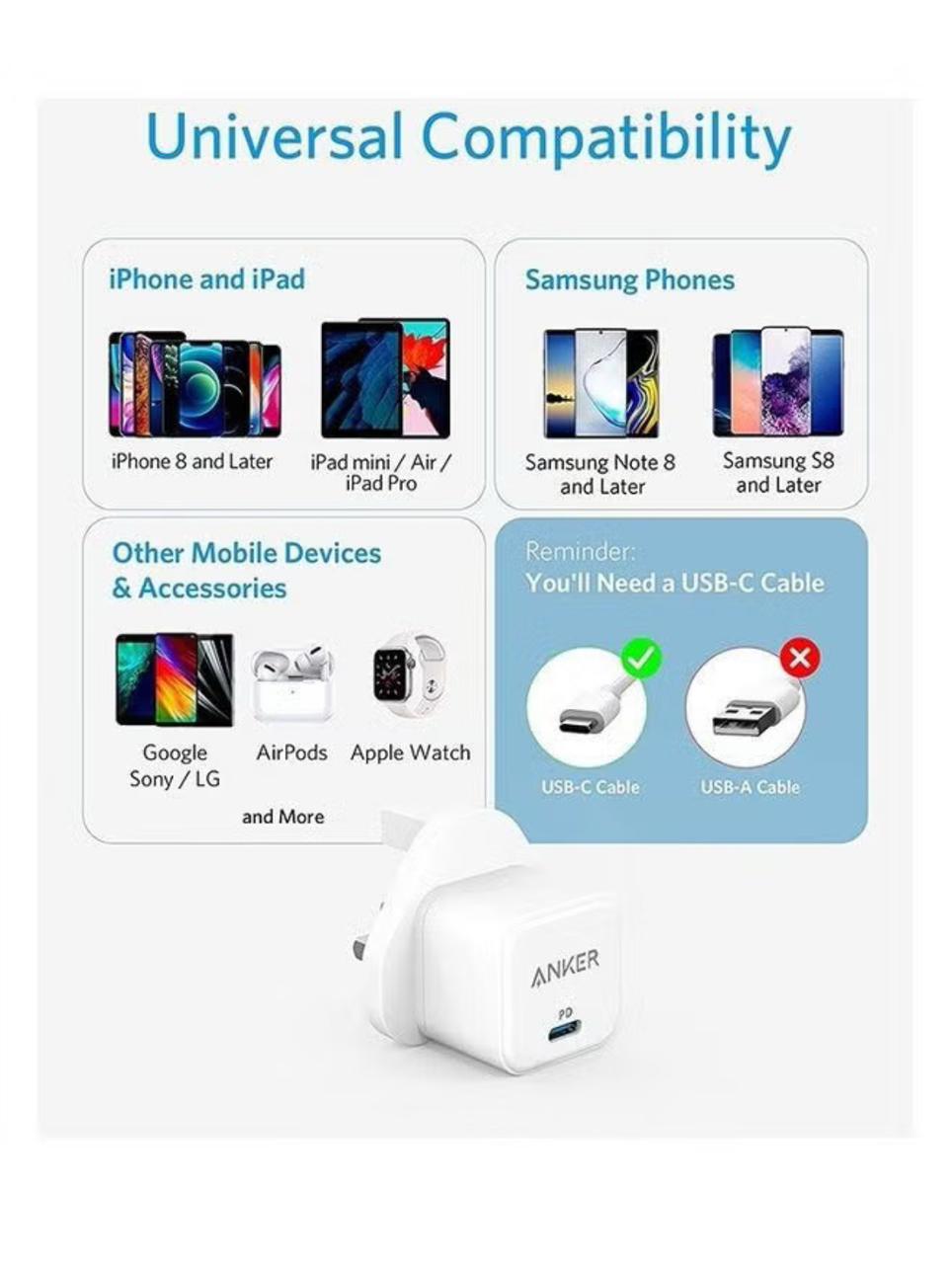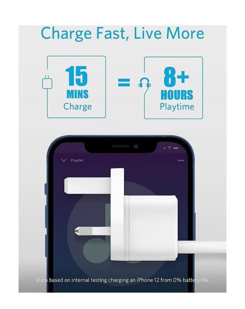 شاحن سريع بقدرة 20 وات، يعد الشاحن المكعب باور بورت III بقدرة 20 وات مناسباً لهاتف آيفون 13/ 13 ميني/ 13 برو/ 13 برو ماكس/ 12 وهاتف جالاكسي وبكسل 4/ 3 وآي باد/ آي باد ميني والمزيد أبيض