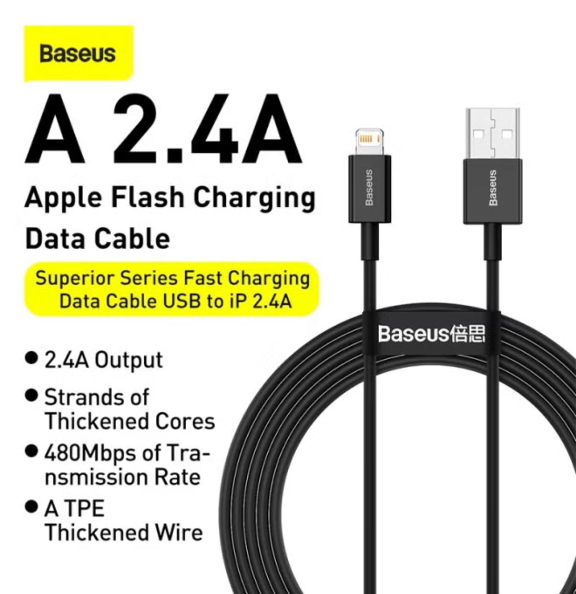 كيبل شحن سريع للايفون يو اس بي من بيسوس الطول: 1 متر. التوصيل: يو اس بي الى لايتنينغ تيار: 2.4 امبير معدل نقل البيانات 480 ميجابت في الثانية الاستخدام: شحن ونقل بيانات سريع.