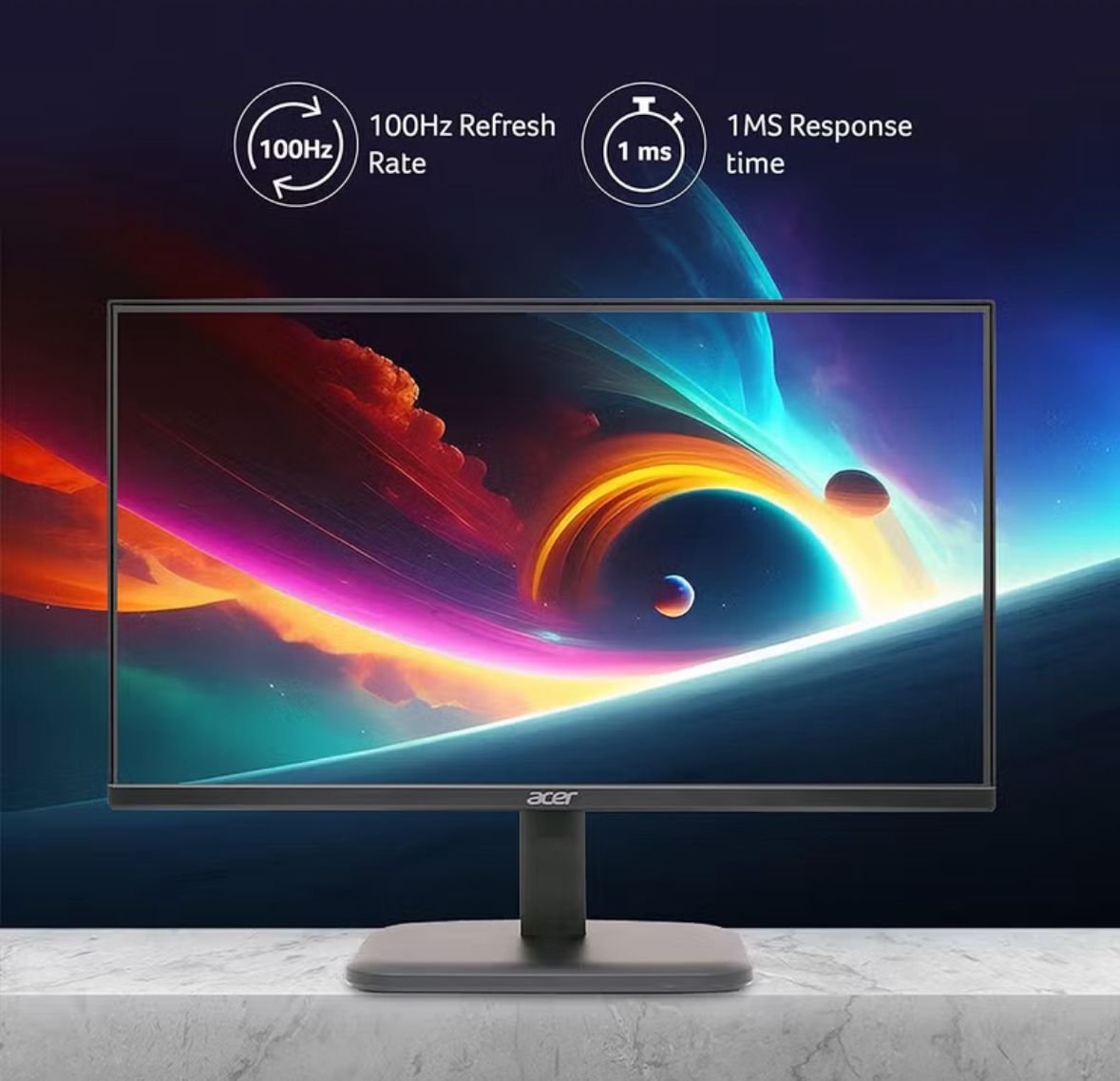 Acer VisionCare reduces flickering and blue light, so you can look at the screen comfortably for long periods of time