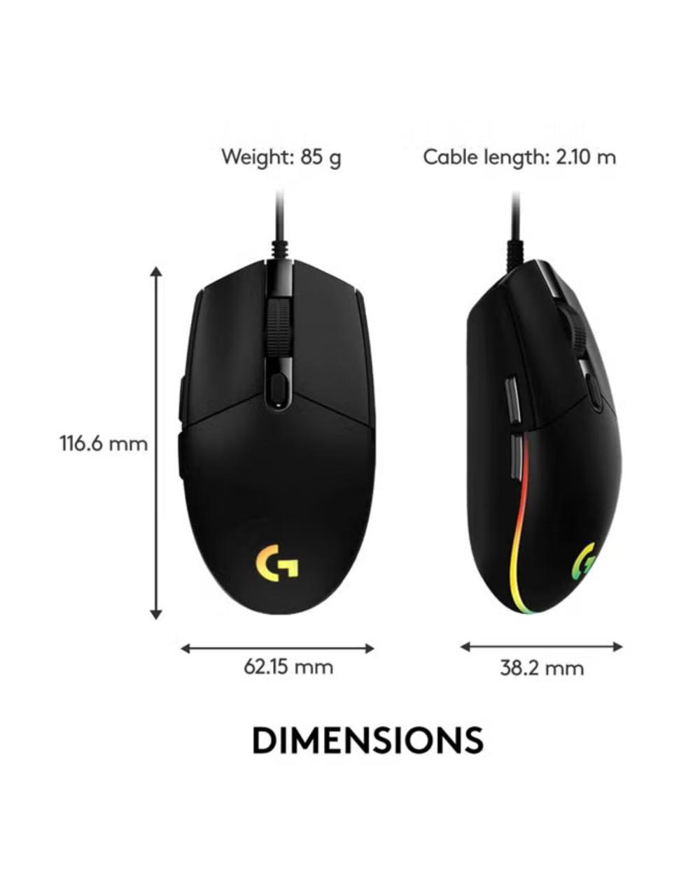 ماوس الألعاب لوجيتك G102 Light Sync مع إضاءة RGB قابلة للتخصيص، 6 أزرار قابلة للبرمجة، خفيف الوزن أسود
